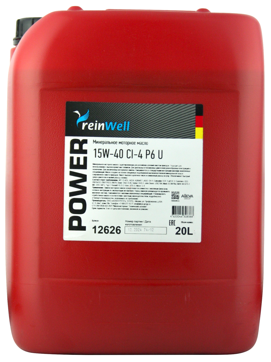 12626 (4922) [ReinWell] Моторное масло POWER P6 U 15W-40 CI-4 (20л)